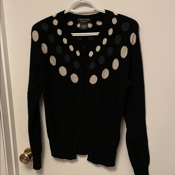 Lord & Taylor Black Cardigan with Polka Dots Size Medium
