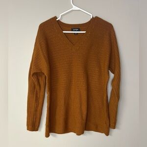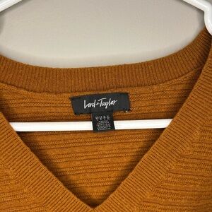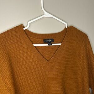 Lord & Taylor Burnt Orange Textured V-Neck Long Sleeve Sweater