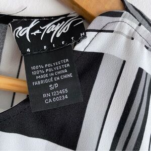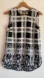 High low hem. Tunic length. Scoop neck. Plaid in black, white and grey. Animal print pattern below the waist. Back slit with fabric covered button closure. Boxy shape. Excellent used condition.