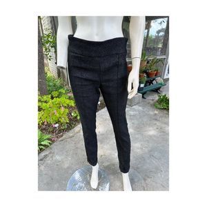 Lord & Taylor Kelly Pull On Black Stretch Trousers Silver Metallic Flat Front 14