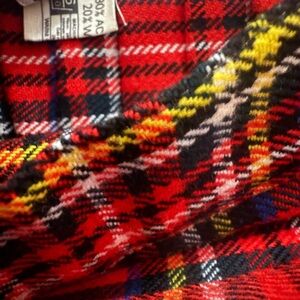 Kilt made in England. Chic tartan design with vibrant red tones. Perfect for versatile styling. 20% wool 80% Acrylic.