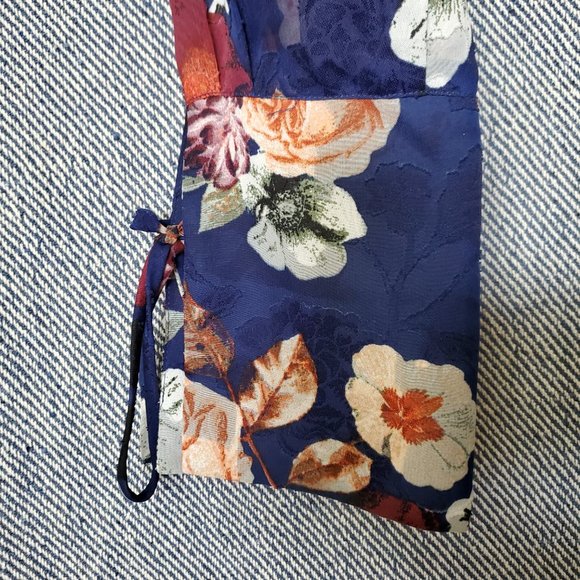 Colour: Navy base with white, deep red, purple and peach flowers and leaves