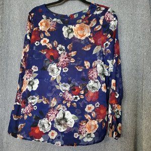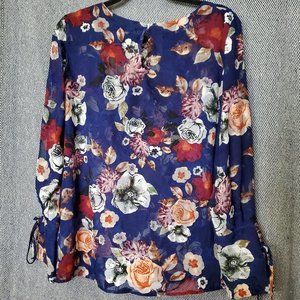 Lord & Taylor - Size M - Dark Graphic Floral Top - Long Sleeve - Cuff Ties - EUC