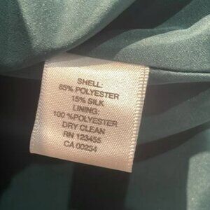 Fabric : Shell 85% polyester, 15% silk; Lining 100%