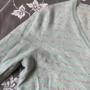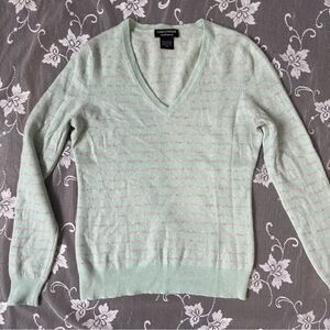 Lord & Taylor 100% Cashmere V-Neck Striped Sweater Sz Medium