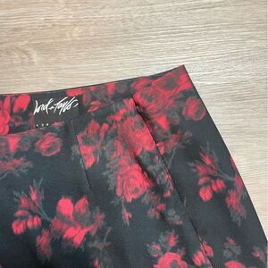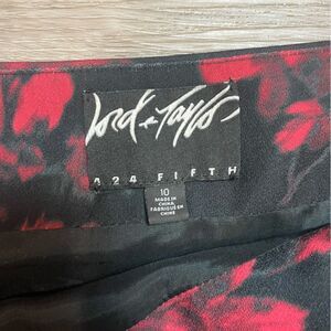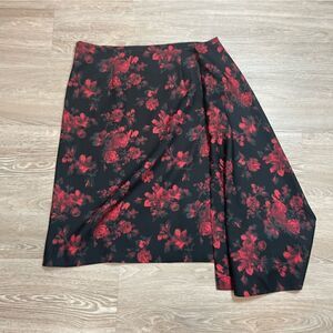 Lord & Taylor Red Floral Skirt with black background. Beautiful & Elegant fabric draping at the side Zipper closure at side
