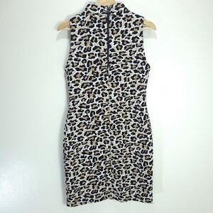 Lord & Taylor Design Lab leopard print sleeveless mock neck sheath dress. Stretchy poly rayon spandex blend. Excellent condition no stains or tears. Rear zipper closure. Size M.