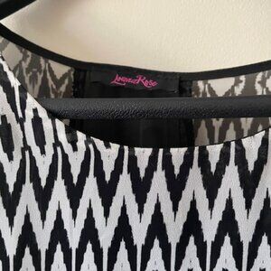 Lorena Rose Blouse White /Black Geometric Pattern – Batwing ¾ Length Sleeves Size L, 100% polyester, scoop neckline – semi sheer material –covers well - lined front and black panel in the back – falls nice over the hips at the hem – can be worn tucked in or over the pants/skirt - roomy blouse not form fitting - light weight – worn alone or under a suit – sleeves have finished gathered hem - measurements from under the arms , sleeve length 13 in - 19 in across chest, back length from neck to hemline is 23 in – front of blouses neckline to hem – 19 in- smoke/pet free home