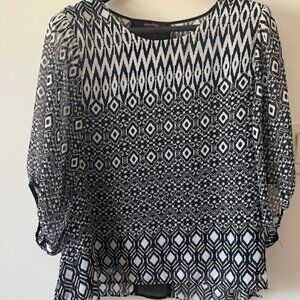 Lorena Rose Blouse White /Black Geometric Pattern- Batwing ¾ Length Slv Sz L