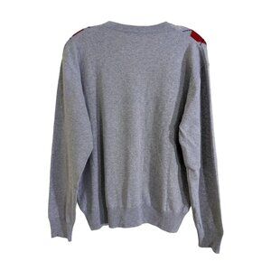.. Elevate your wardrobe with this designer V-neck sweater by Lorenzo Magni. The gray argyle pattern, made from a blend of wool, and acrylic materials, exudes a classic preppy style, perfect for any occasion. The tight-knit fabric type provides durability and comfort, making it a great addition to your collection. Crafted in Italy, this sweater is available in a size Large and is suitable for men who appreciate fashion. The sweater is versatile and can be paired with any outfit, making it a must-have item. Add this beautiful sweater to your wardrobe today!