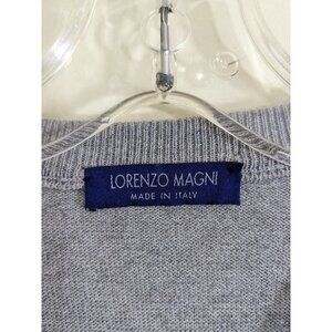 Lorenzo Magni Mens Wool Blend Sweater Large Gray V Neck Argyle Made In Italy