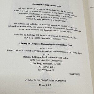Loretta Lynn You're Cooking It Country My Favorite Recipes And Memories. Hardcover signed by Loretta not personalized. It is filled with easy to follow recipes including one for her tuna casserole. It is filled with pictures and personal stories. It is a wonderful read for anyone who enjoys Loretta Lynn's music and home cooking.