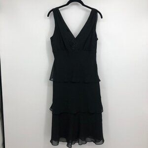 Lori Ann Montreal Vintage Black sleeveless tiered midi dress sequin broach 8
