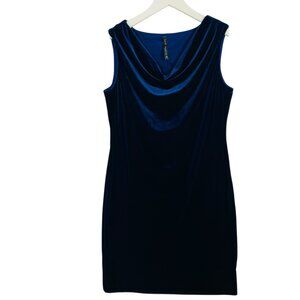Lori M Size large Velvet Cowl Sheath Knee Length Dress Stretch Navy Blue