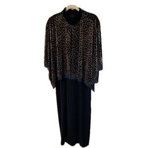 Lori Weidner Designer Black Velvet Evening Dress with Fringed Animal Print Cape