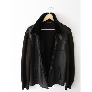 Loro Piana Aviator Shearling Cashmere Bomber Jacket Size IT 52/ US L Dark Brown
