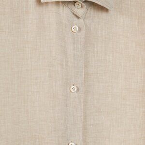 Made in Italy, this shirt from Loro Piana is crafted in an oatmeal linen, and features long sleeves, buttoned cuffs, a collared neckline, front button closures, and a rounded hem.