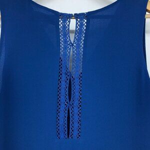 Lost April Cobalt Blue Lace trim V-neck Chiffon Sleeveless Blouse LG