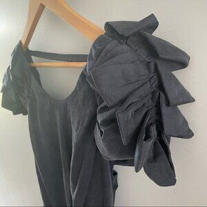 Beautiful cotton silk blend blue dress. Beautiful ruffled bow details on the shoulders. Size small but might even be closer to XS. In beautiful used condition.