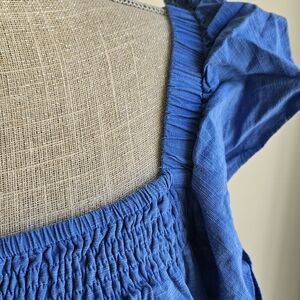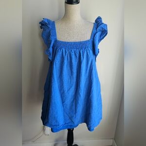 Step out in style with this chic blue mini dress featuring playful ruffle sleeves. Perfect for any occasion, this dress offers both comfort and elegance. Excellent condition, size M