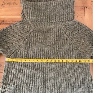 Deep cowl neck and long sleeves.