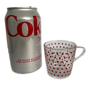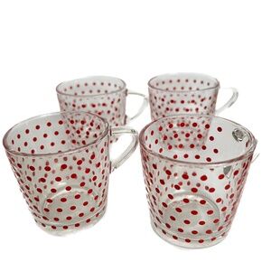 Lot 4 IKEA Mugs Red Polka Dots 2 1/2" Glass Espresso Made In France Clear 18314