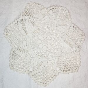 2 Antique 1890s White Crochet Circular 7 pointed Snowflake pattern Doilies, Handmade by my Great Grandmother, Excellent Condition.