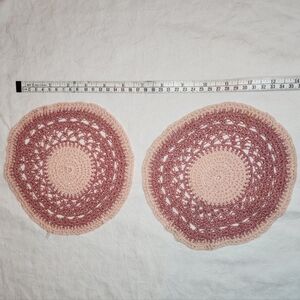 Plus 2 Vintage 80s Dusty Rose & Light Pink circular Crochet Doilies, Excellent Vintage Condition.
