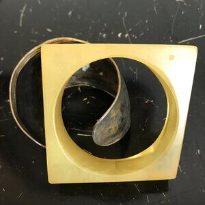 Condition - from new to very good used. Three chunky bangles bracelets - resin, metal and wood. Fit a small-medium wrist.