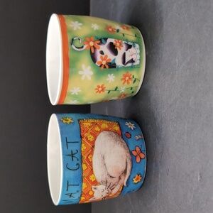 Lot Of 2 Kitty Cat Coffee Mugs Blue/Green .