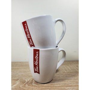 Lot Of 2 Tim Horton's Coffee Mugs - White Red Ribbon Banner Ceramic Mug Cup 2017