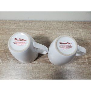 Lot Of 2 Tim Horton's Coffee Mugs - White Red Ribbon Banner Ceramic Mug Cup 2017.