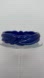 The accompanying jewelry pieces are a chunky, sculpted cobalt blue lucite bangle bracelet and a pair of matching circular earrings. The earrings and bracelet have a beautiful, glossy finish and a unique twisted or knotted design.
