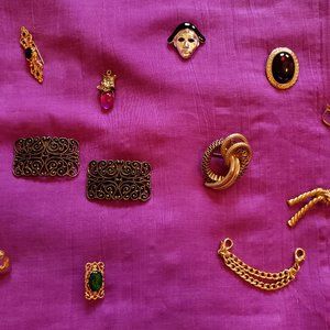 Lot of Vintage Vtg Rare Unique Gold Silver Brass Metal 10 Brooches Pins Clips with 1 Pair of Shoe Clips