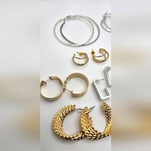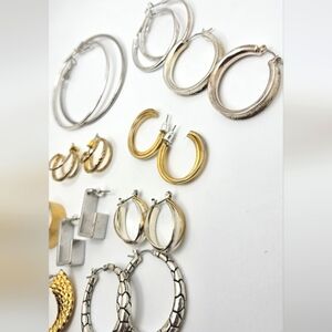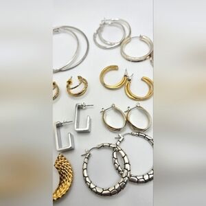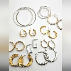 Lot of 10 Pairs of Silver & Gold Tone Hoop Huggie Pierced Earrings