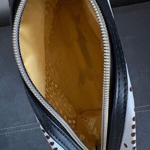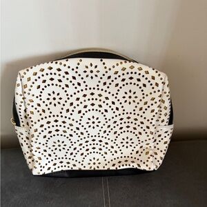 Chic Renuar cosmetic bag with intricate cutouts pattern. Stylish and functional for daily use. Size 10”x7”x3”.