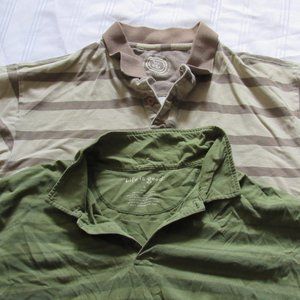 Lot of 2 Life Is Good Polo Men's Short Sleeve Shirts Stripes Green Beige Size L