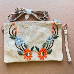 2. Embroidered semi-formal clutch bag. Base is made of plant based material.