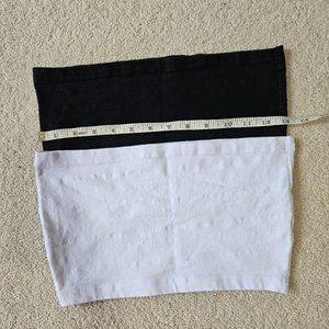 One black, and one white. Material has some stretch, and elastic on top and bottoms. Can be worn as tube tops, or under lowcut tops to cover cleavage.