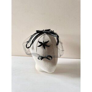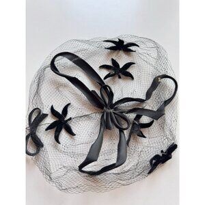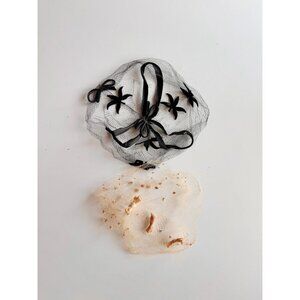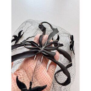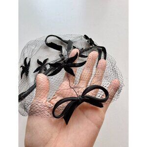 Lot of 2 Vintage Black Nude Mesh Netting Velvet Bows Satin Detail Veils