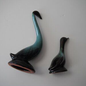 Lot of 2 Vintage Blue Mountain Pottery Bird Green/Black Drip Glaze Canada