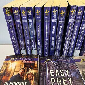 Lot of 23 "Harlequin Love Inspired Suspense" Paperback Novels - Good condition! From previous reading, there are some regular signs of wear on covers, pages, or book spines. There may be stickers on cover spines, or a name/initial on inside cover. Overall, in good condition with lots of reading life left in them!