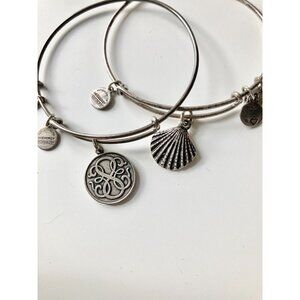Lot of 3 ALEX & ANI Path of Life Silver & Rose Gold Charm Wire Bangle Bracelets