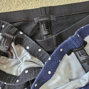 Lot of 3 pairs of shorts in three different colours. Shorts show wear, fading, and pilling. Stretchy and comfy, perfect for wearing underneath skirts or dresses, or lounging around the house. Jersey type material, elastic waist bands, lace trim. Very cute when the lace can bottom can be seen peeking out from under dresses!