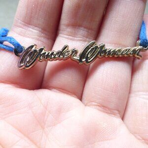 Bracelets are adjustable. The black one has a gold charm that says "Truth. Love. Justice". The blue one has a gold "Wonder Woman" charm. The red one does NOT come with a charm.