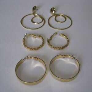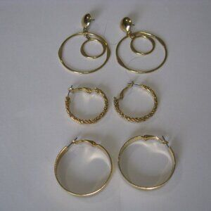 Lot of 3 Gold Tone Hoop Pierced Earrings