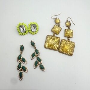 Lot of 3 Pairs Statement Earrings Vintage, Modern Dangle, Drop, and Stud Styles