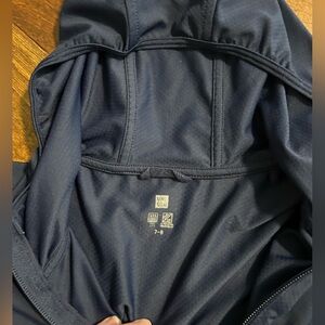 One NWTs blue pullover hoodie from Cat & Jack, Sz 8. Cozy and perfect condition. One Uniqlo, light zipup hopdie in Sz 7-8 years, excellent condition, nice light dry fit material, great for summer nights or keeping sun off your kid! And black Old Navy Sz 8, black zip up hoodie with front pocket. All classic looking, no logos or pictures so great for everyday wear and classic style for any kid. Cat & Jack is Target branded so $12 US, Uniqlo sells for $30 new and Old Navy is $20 new, so all three for fraction of cost.