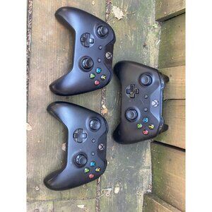 Elevate your gaming experience with this lot of 3 Xbox One Wireless Controller Remotes, each finished in a sleek black. Designed by Microsoft for unparalleled precision and comfort, these controllers are the perfect companion for your Xbox One platform, ensuring you stay in control of your gaming sessions. The model Xbox controllers are compatible with a wide range of games, offering seamless integration and responsive gameplay.Please note that this bundle includes three remotes, with two missing their back cover pieces. Despite this, each remote is functional and ready to be paired with your console for immediate action. Whether you're adding to your collection or replacing your current controllers, these remotes are sure to enhance your gaming setup.