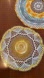 Lot of 3 vintage crocheted doilies, circular, white, yellow, orange, blue